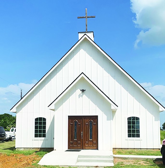 One year after a fire destroyed Woodrow Baptist Church near Covington, the congregation is once again worshiping on site after rebuilding the church. Services had been held at First Baptist Church activity center in Blum since the fire in July of last year. The first service in the new sanctuary was held Sunday, August 1, with Pastor Rob Rolison delivering the message and a dedication prayer by Ken Coleman, Director of Missions for the Hill County Baptist Association. The church expressed thanks to those assisting with the building project, including Towash Baptist Church of Whitney, First Baptist Church of Blum, New Life Baptist Church of Covington, Greg Younger Construction, Sherwin Williams and the many memorial donations made in memory of Sam and Carol Houston. Services are held at 11 a.m. Sunday mornings at the church, which is located between Blum and Covington on Farm Road 67. Visitors are always welcome.