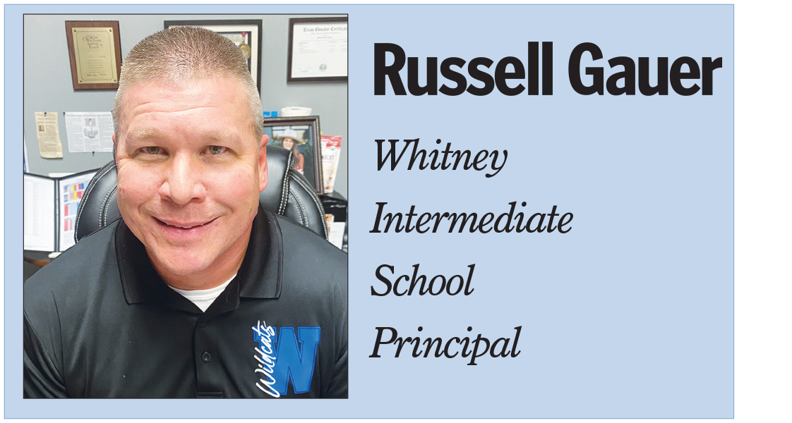 This is Russell Gauer’s eighth year as principal of WIS, and he has been an assistant principal or principal for 13 years. Before going into administration, he was a coach for six years and a science teacher for 12 years. He has been working in education for 25 years with 21 of those years in Whitney ISD. He has a Bachelor of Science degree in Biology, a Master of Education degree in Physical Education, and a principal certification.