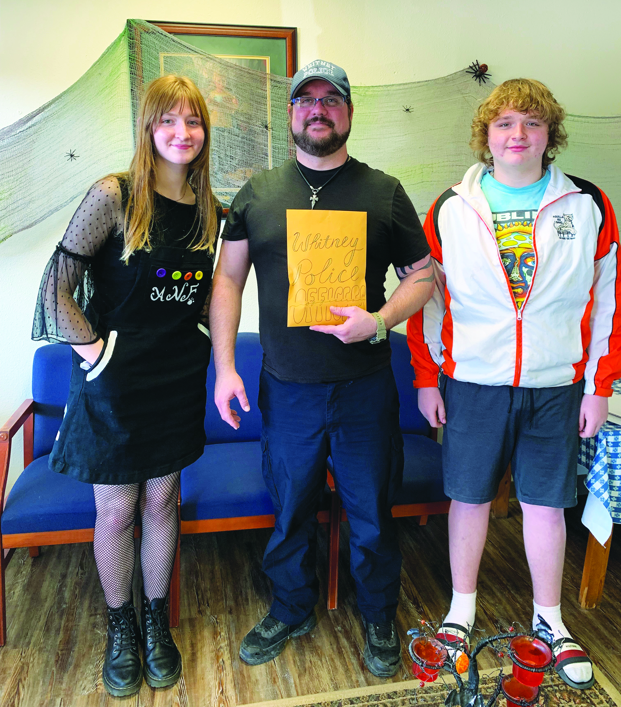 In honor of National Coffee with a Cop Day in October, Aquilla High School students, along with the Student Council, wrote cards of appreciation to local police departments. Senior Alexis Fine and sophomore Daniel Fine presented the cards to Whitney Officer Jason Perkins. Cards were also mailed to the Hillsboro and West police departments to thank them for their efforts.