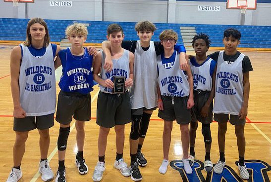 The Whitney Eighth Grade Boys Basketball A Team won the recent Whitney tournament. Pictured (l to r) are Jadyn Barnett, Brodie Hilton, Mason Pelham, Landon Bennett, Connor Marino, Delvion Walter, Bryan Sanchez. Not pictured are: Jayden Ward, Angel Saucedo and Kyren Howard.