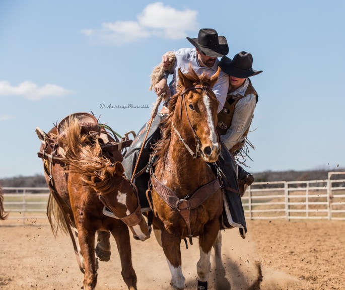 During their nearly 22 years of marriage, the Merrills have traveled all over the United States to participate in TV shows with their horses. In addition to living a cowboy lifestyle and making television appearances, the Merrills are farm and ranch realtors; Jack is a PRCA rodeo pickup man, and Ashley owned a boutique in downtown Whitney for about 10 years and is now a photographer.