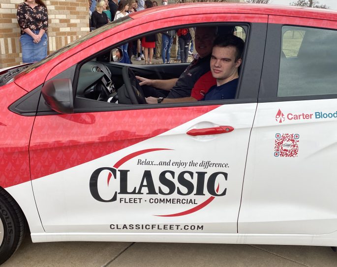 At the pep rally, Brad Roblyer, General Sales Manager at Classic Fleet, said, “Classic Fleet is proud to be partners with Carter BloodCare for the second year in a row as part of the giveaway. We couldn’t be more proud of the partnership we have with them.”
