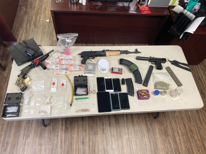 Officers joined with the Hill County Sheriff’s Office to execute a search warrant in the 300 block of Dewayne Circle in Whitney Thursday morning, March 17, and located multiple types of narcotics along with illegal firearms and assault rifles.