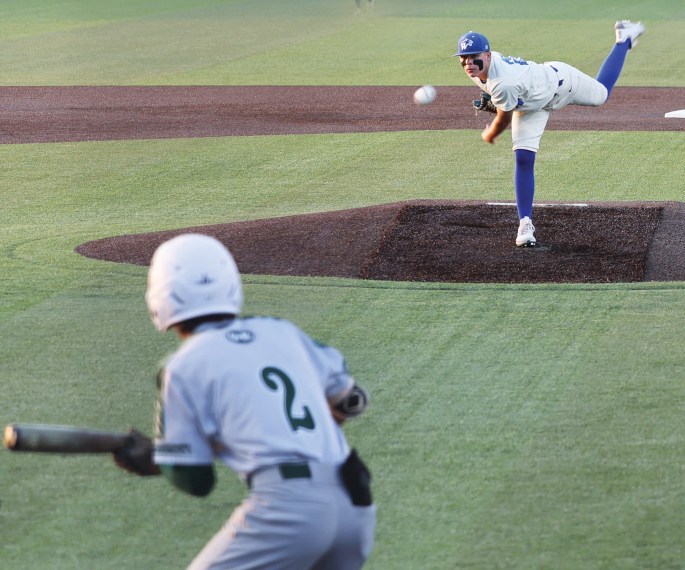 The Whitney High School varsity baseball team won the bi-district championship Saturday, May 7, after a three-game series against Scurry-Rosser. The Wildcats lost the first game played in Whitney Friday, May 6, by a score of 5-2, but went on to win the second game 9-2 in Scurry Saturday to force a third game. Whitney sealed the deal by winning 2-1 to earn the bi-district title. The playoffs will continue with Whitney and Little River Academy facing off in the area round. Game one will be at 6:30 p.m. Thursday at Lake Belton High School. Game two will be at 6:30 p.m. Friday in Whitney, and if game three is necessary, it will be at noon Saturday at Midway High School. Pitcher Colby Estill is pictured in the first game last Friday.