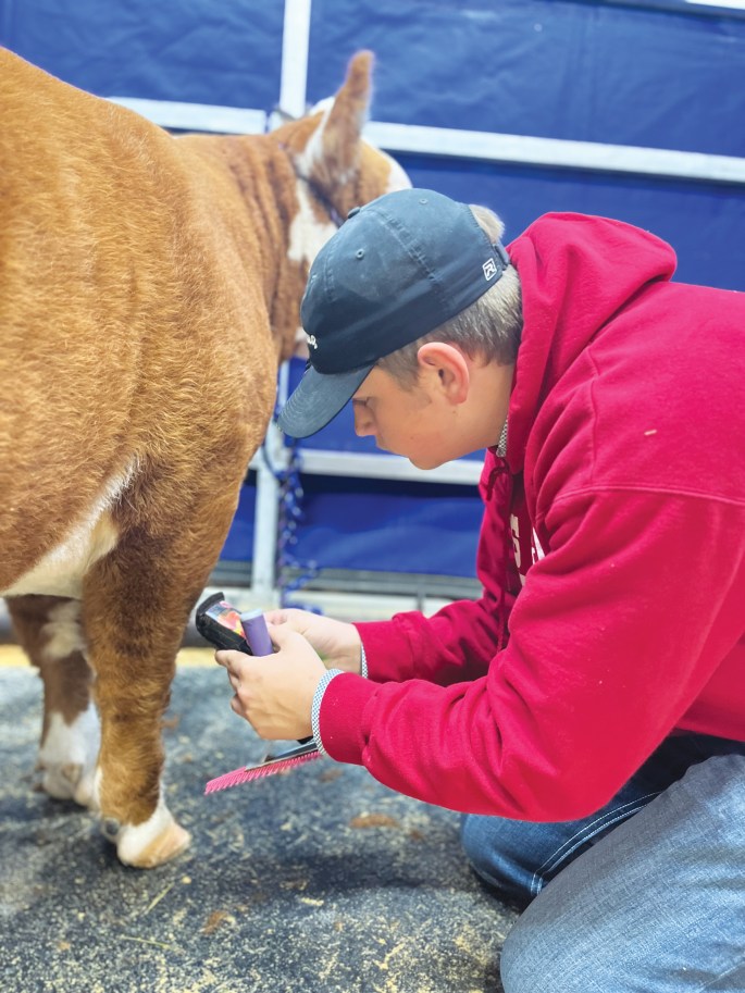 Tracen described the amount of time and dedication he puts into preparing for the fair by sharing his schedule. He said, “I get off of school at 3:30, and I’m at the barn from 3:30 until dark every single day. On the weekends, we clean out the entire barn, so that takes a whole day at least.” He even stays in the barn late at night sometimes, and he also spends 30 minutes checking on his animals each morning before school.