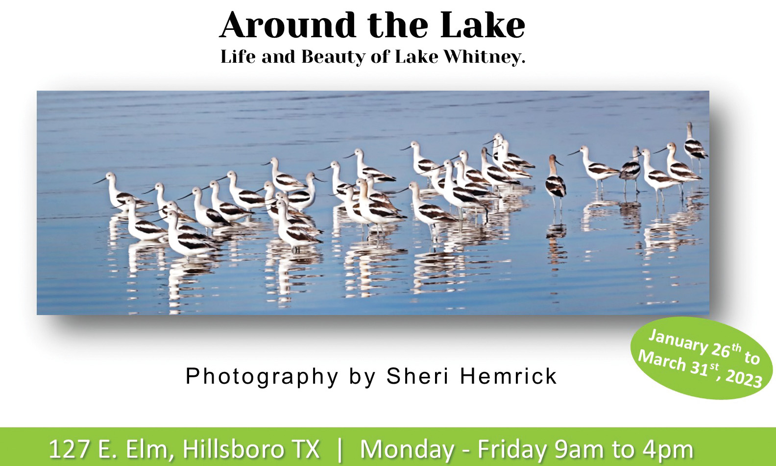 An exhibit featuring the Lake Whitney photography of Hillsboro resident Sheri Hemrick will open at the fotografías gallery in downtown Hillsboro Thursday, January 26. A Toast with the Artist event will kick off the exhibit at 5 p.m., when Hemrick will be present and attendees can enjoy wine and hors d’oeuvres.