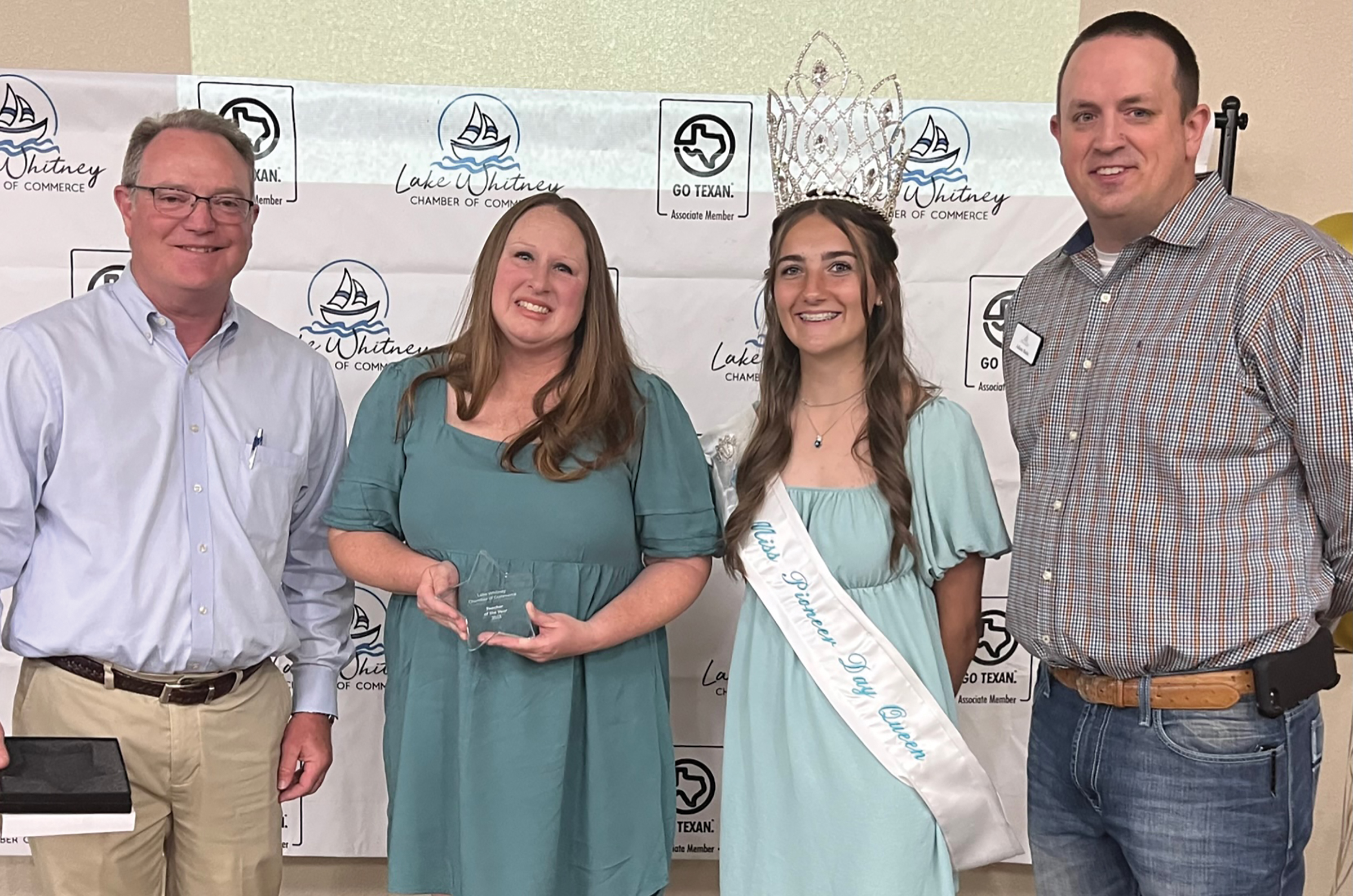 Chamber directors and staff involved in the banquet included: Executive Director Janice Sanders, President Adam Bain of Lake Whitney State Park, Treasurer Jayson Lam of Peoples Bank, Director Joe Marek of HILCO Electric, Director Lori Proctor of 24:15 Realty, Director Connie Terry of Citizens State Bank, Director Steve Peacock of Citizens National Bank, Director Rudy Reyna of Build 1 Way Construction, Director Jean Drugan of Whitney Senior Center and Director John McCullough of Whitney ISD.