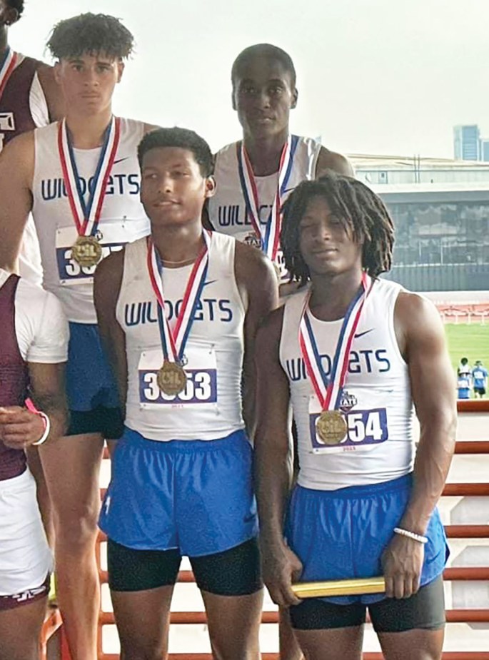 Whitney High School’s 400m relay team of Jairdyn Anderson, Tristen Wilson, Marcus Wilson and Duan Johnson took third place in the state track and field competition held at Mike Myers Stadium in Austin last week with a time of 41.83. The team advanced after securing the championship at the regional meet held last month in Hewitt. Jaycee Green (right) placed fifth in the state in shot put with 38′-5.75″ after she was the Region III 3A champion in that category at regionals.