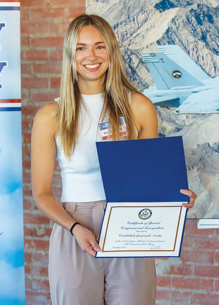Whitney High School senior Joannah Andis recently received a Military Academy nomination to the United States Naval Academy (USNA) from Congressman Jake Ellzey. She also received an appointment to USNA.