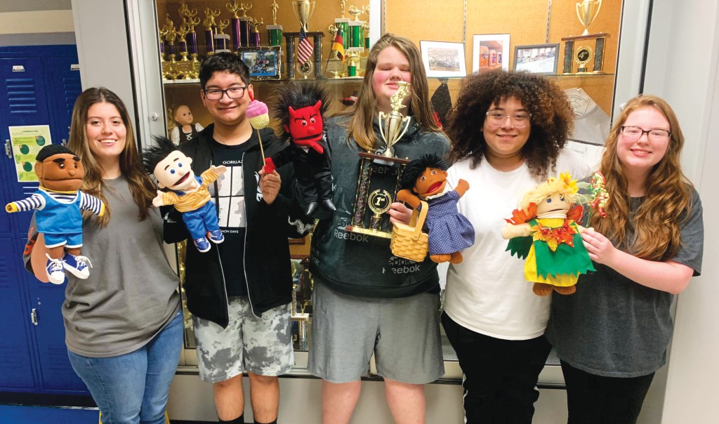 First place: Upper Level Puppet Show – “Der Teufel sucht eine Frau” – Syvana Hill (Kasper), Fabio Garcia (Seppl), William Shelton (der Teufel), Dariana Contreras (die arme Gretel) and Linsey Bledsoe (die Waldfee)