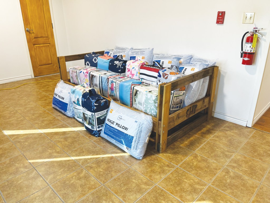 In addition to the beds built, the grant allowed the chapter to purchase 12 bedding sets and 12 pillows for twin-size beds.